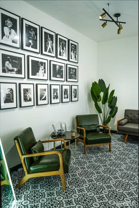 There is a huge bathroom and a large green room for guests to hangout in as well. It is fully soundproofed, so guests can talk at a normal level within the green room without interrupting the podcast.