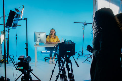 Our Tempe studio includes 2 different filming set options. The flex space is a great set to film testimonies, corporate shoots, etc. The Tempe cyc wall studio includes full lighting.